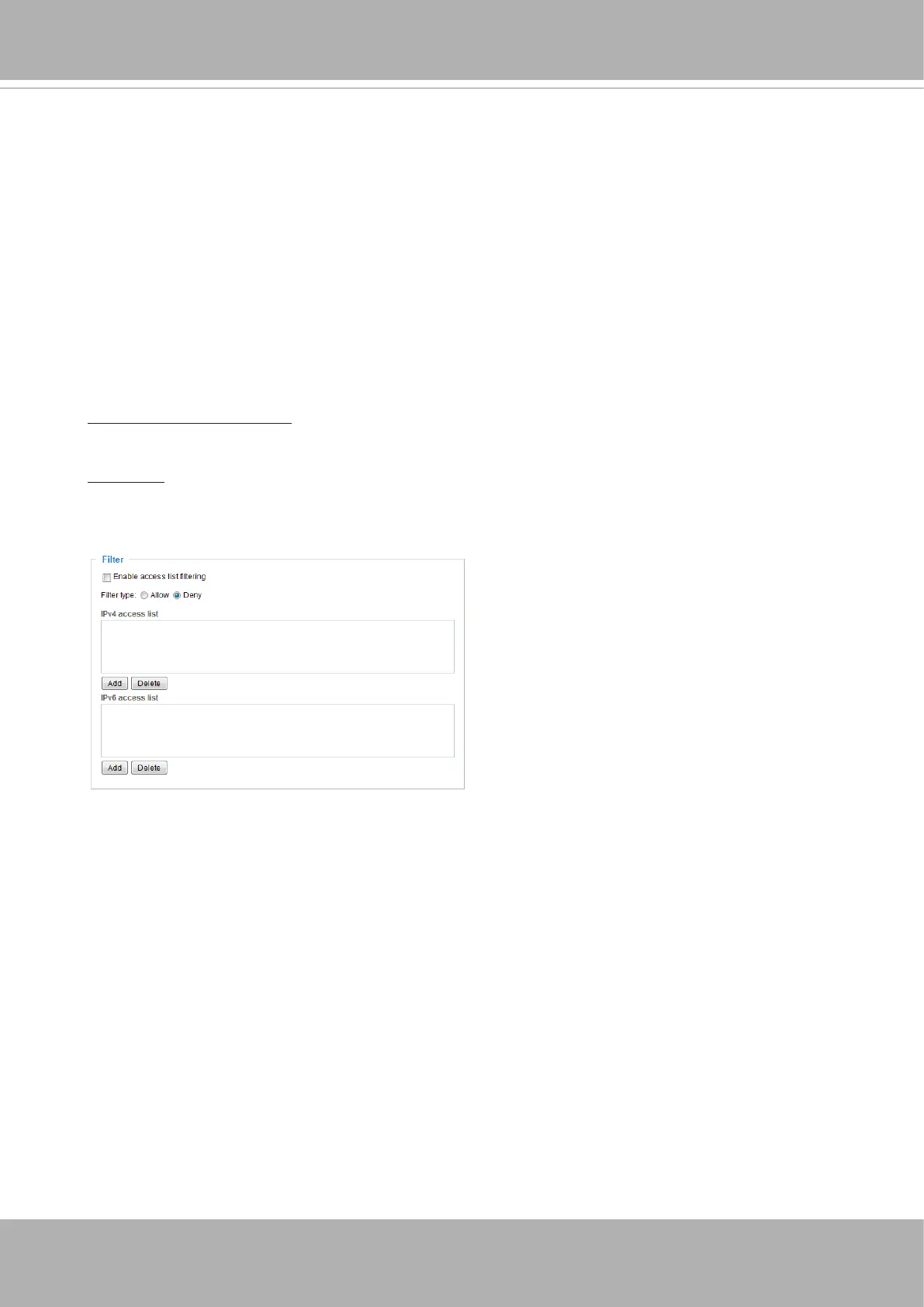 whose IP addresses are on the Access List below can access the Network Camera, and the others