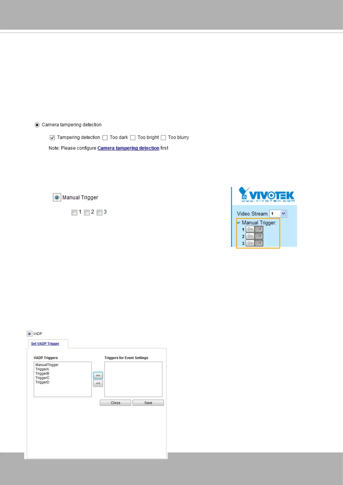 This option allows the Network Camera to trigger when the camera detects that is is being tampered