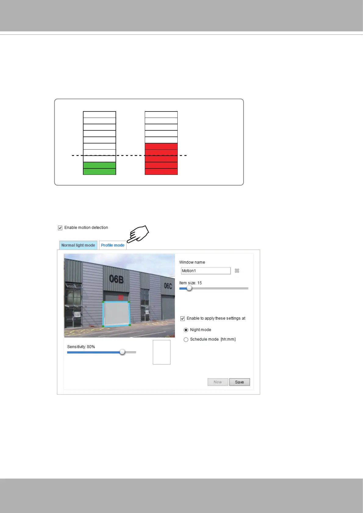 If you want to congure other motion detection settings for day/night/schedule mode (e.g., for a