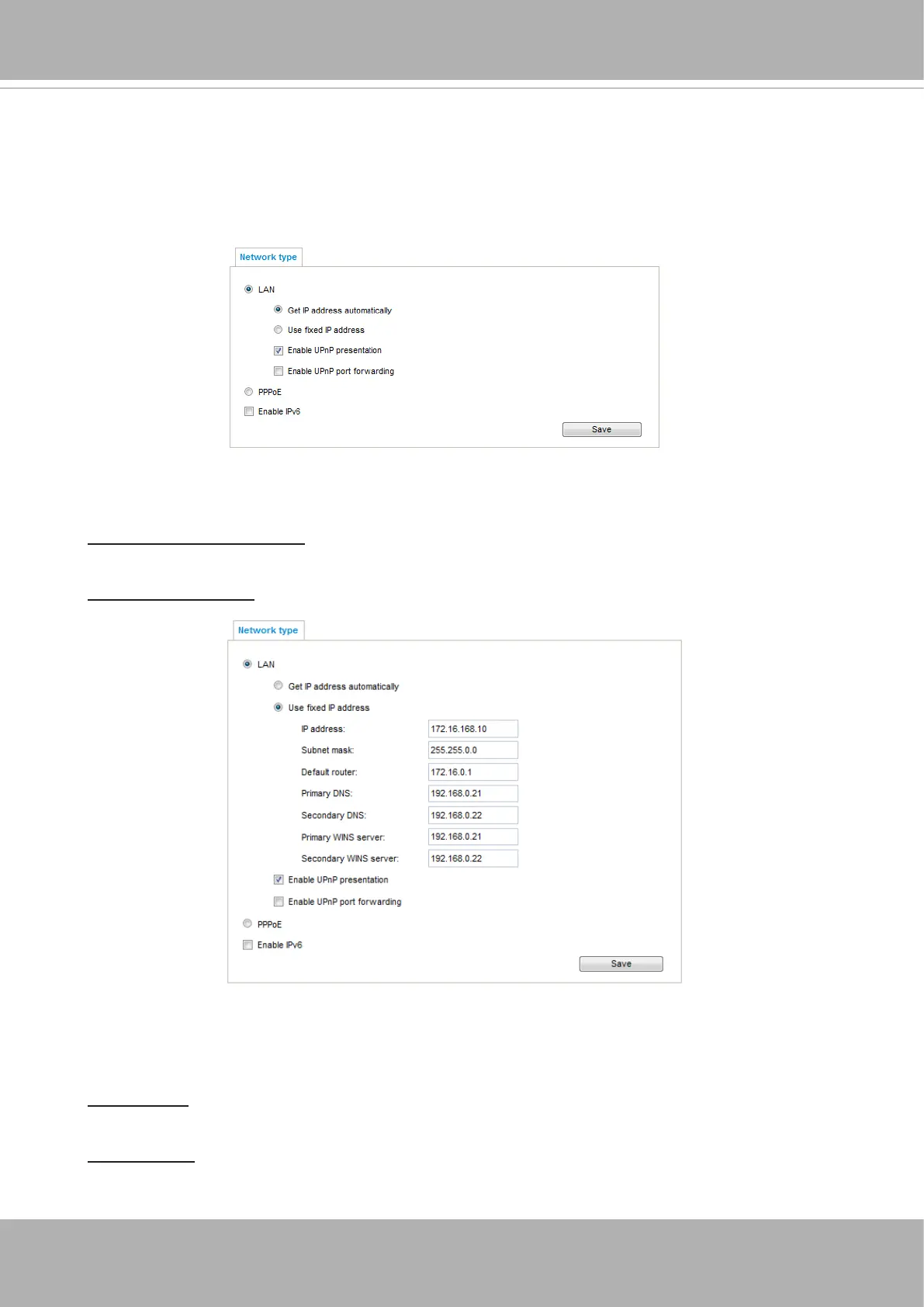 Use fixed IP address: Select this option to manually assign a static IP address to the Network