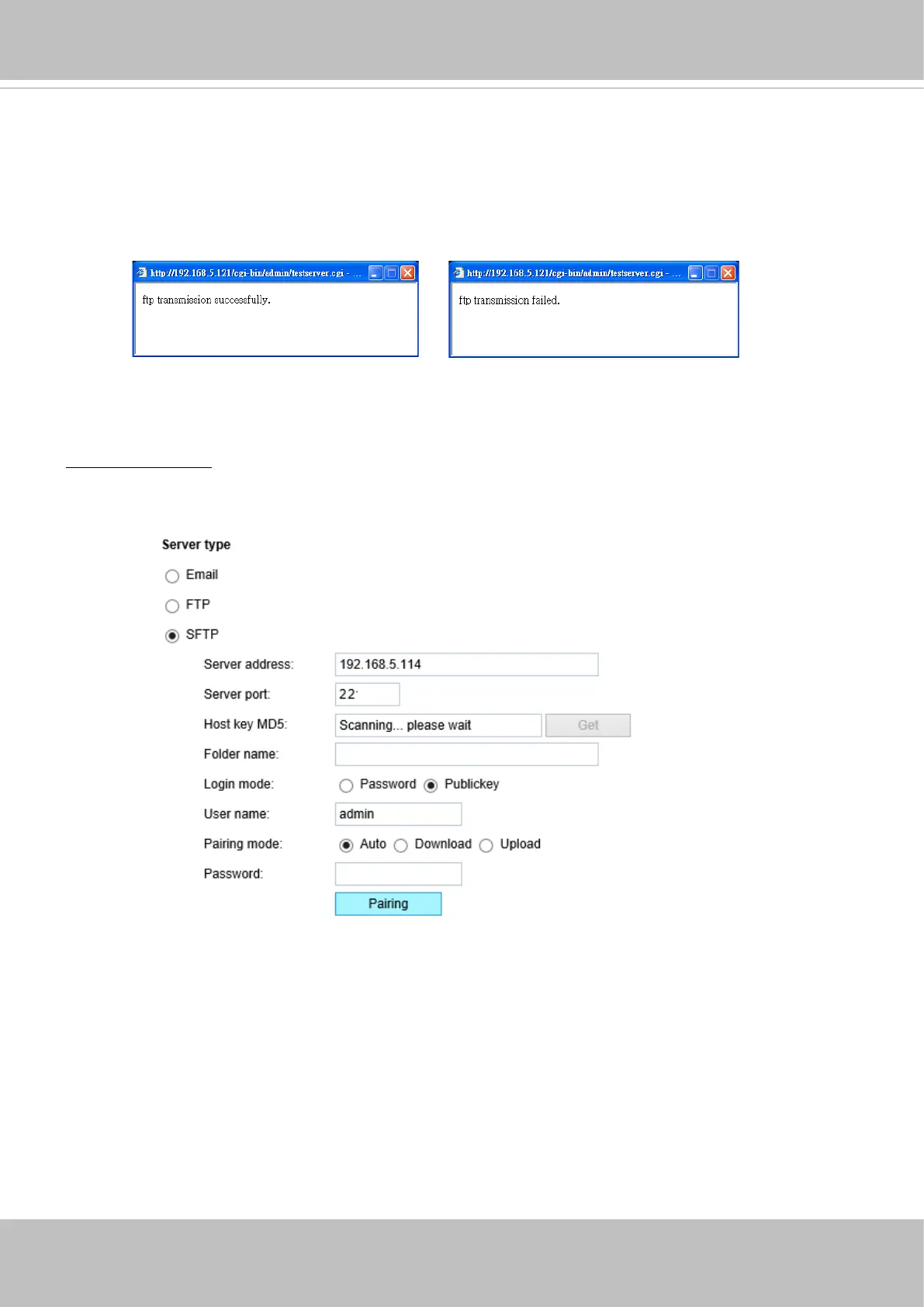 To verify if the FTP settings are correctly congured, click Test. The result will be shown in a pop-up