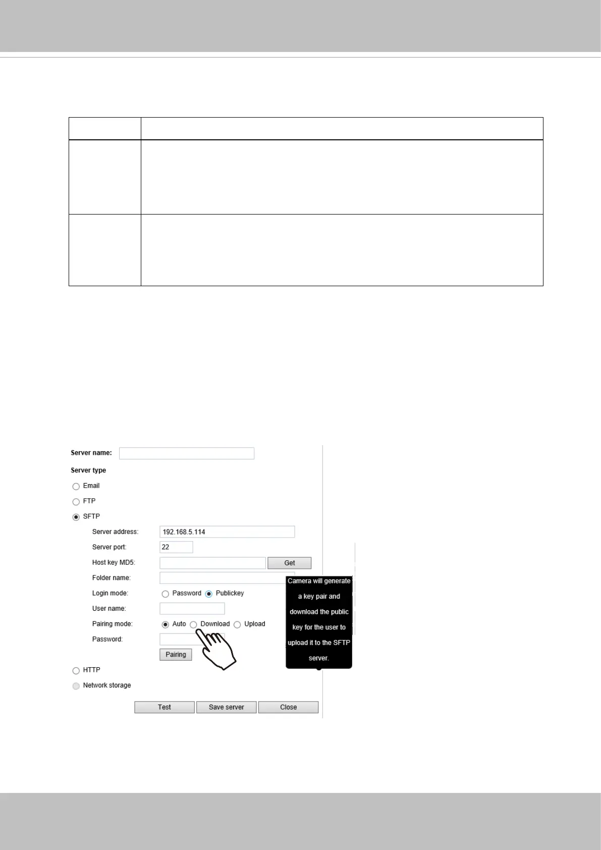 Auto Camera will generate a key pair and auto pair public key with the SFTP server.