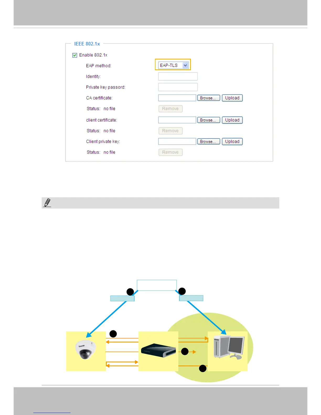 3. The switch also forwards the RADIUS Server’s certicate to the Network Camera.