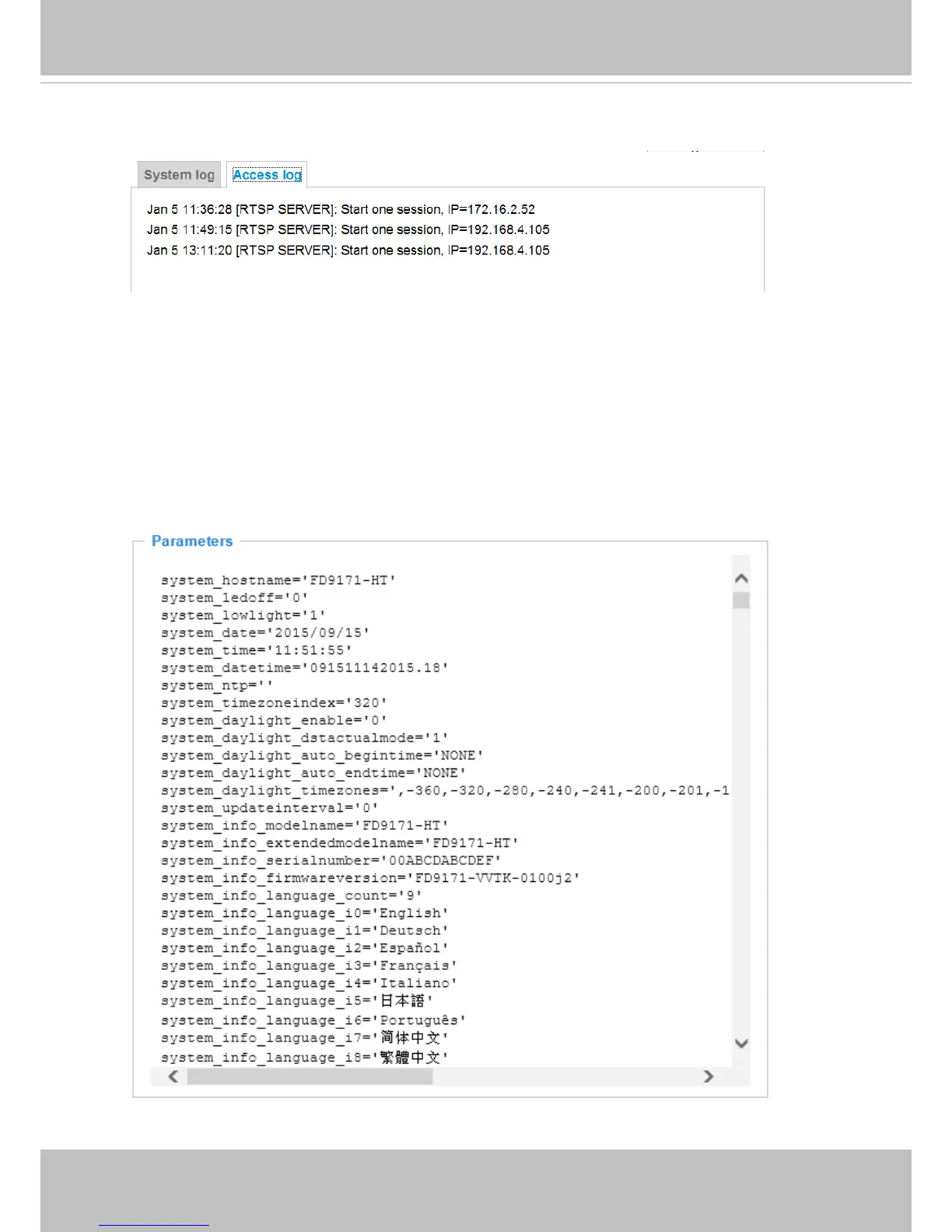 administrators) in a chronological order. The access log is stored in the Network Camera’s buffer