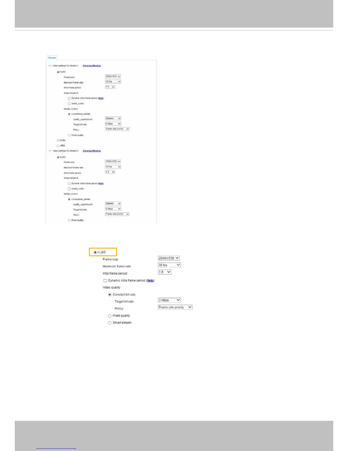 size and a higher bit rate for live viewing on web browsers, or recording the stream to an NVR.