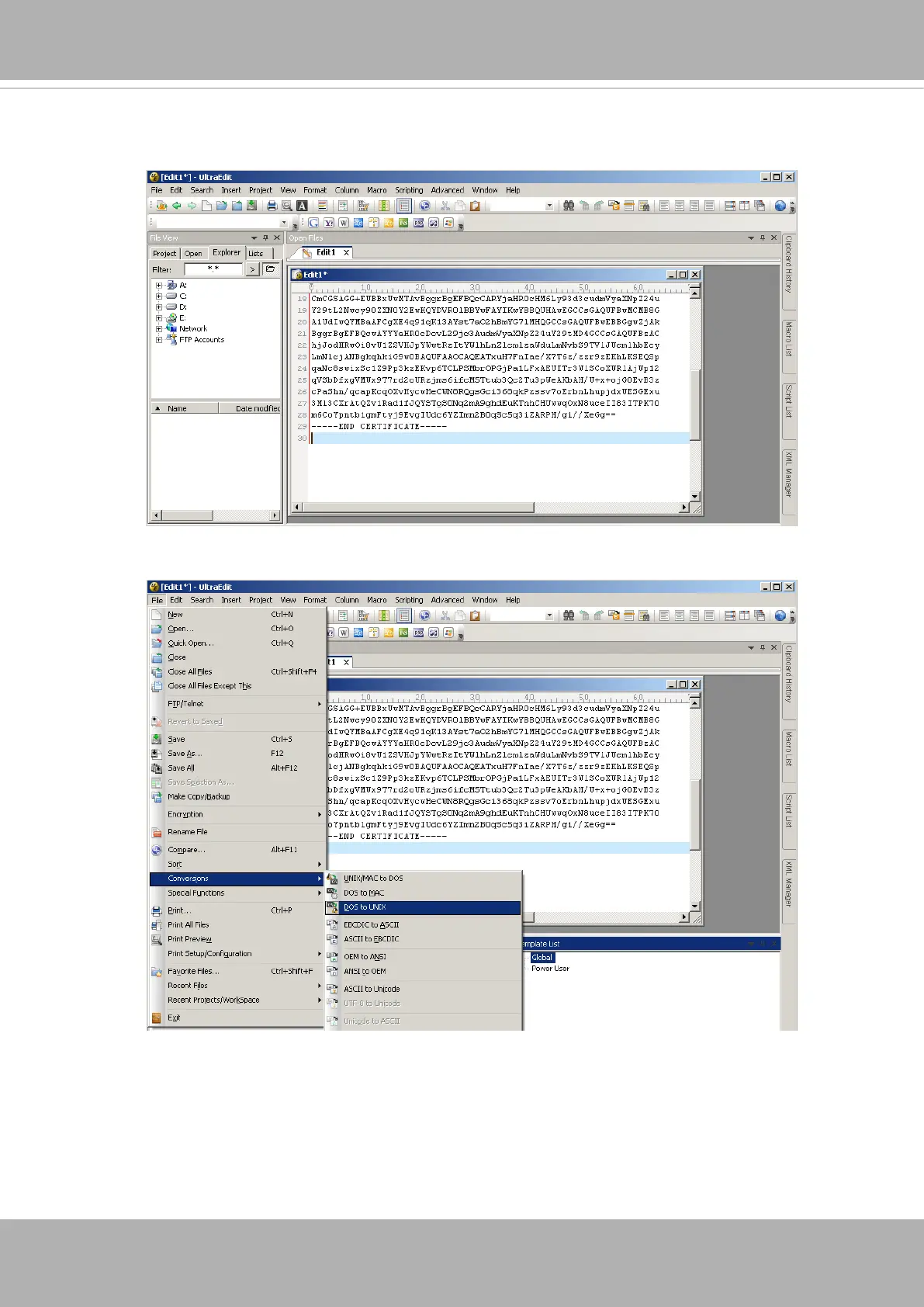 7. Open a new edit, paste the certicate contents, and press ENTER at the end of the contents to