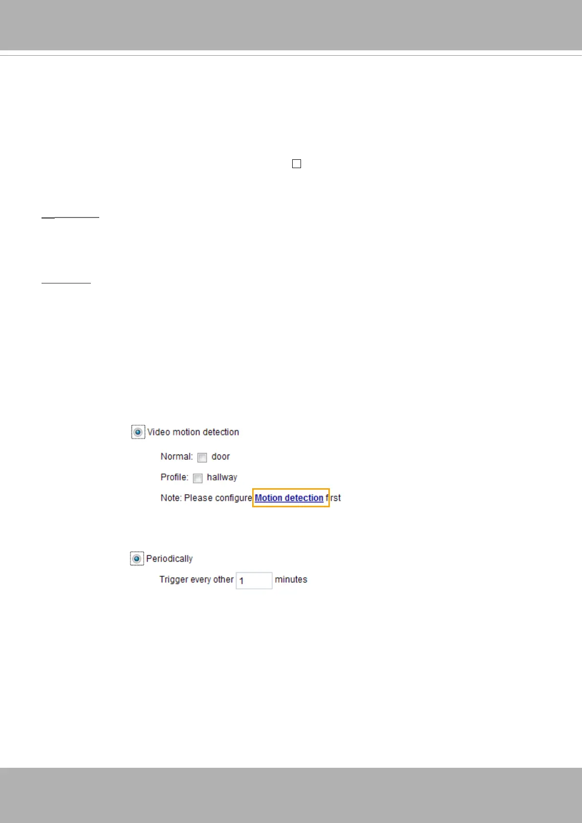 This option allows the Network Camera to trigger periodically for every other dened minute. Up to 999