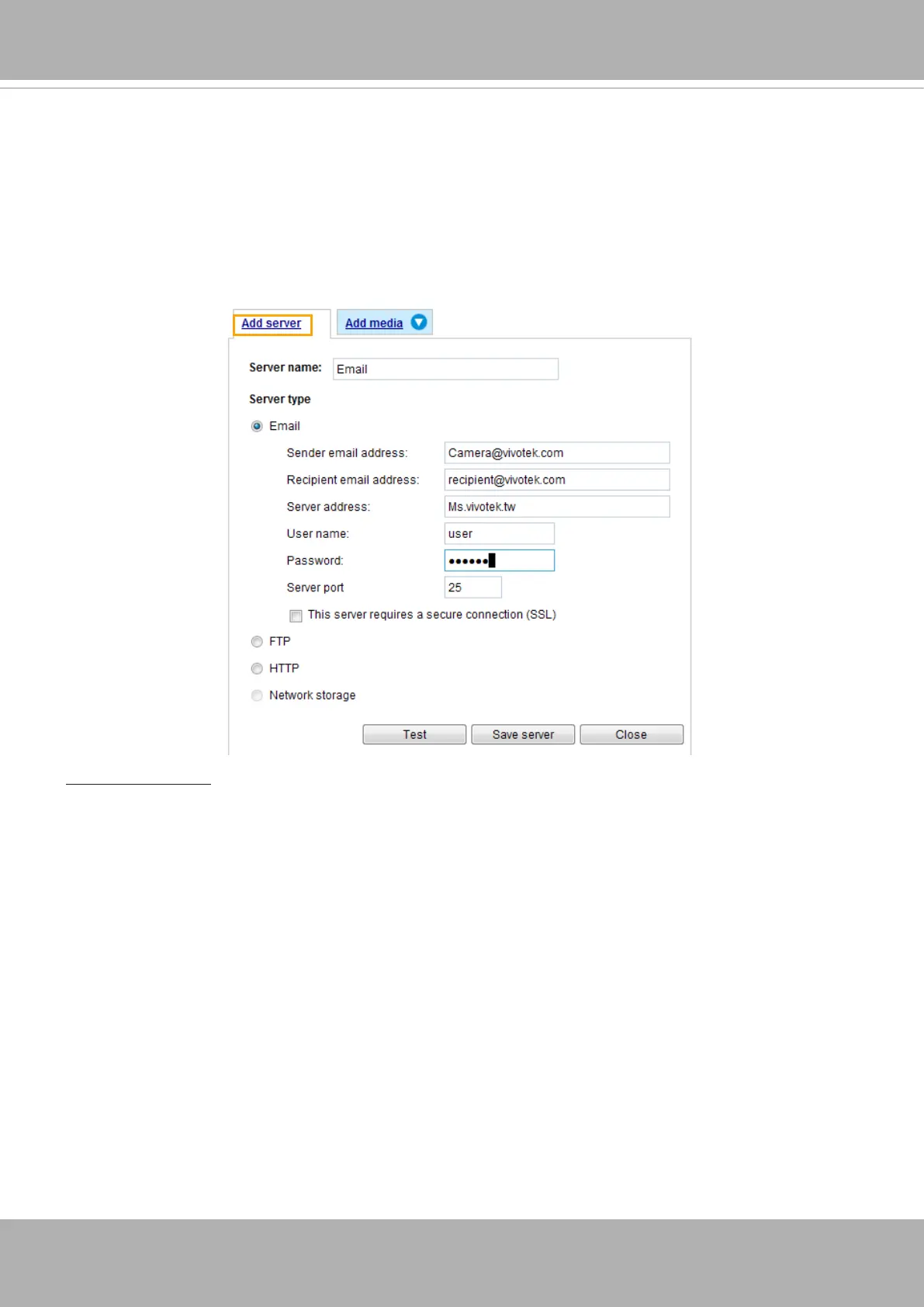It is necessary to congure the server and media settings so that the Network Camera will know what