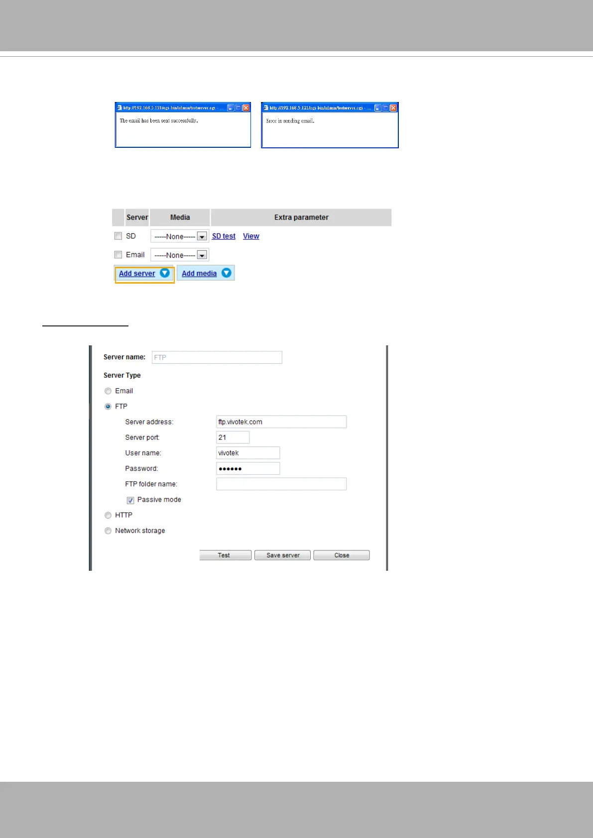 ■ Server address: Enter the domain name or IP address of the FTP server.