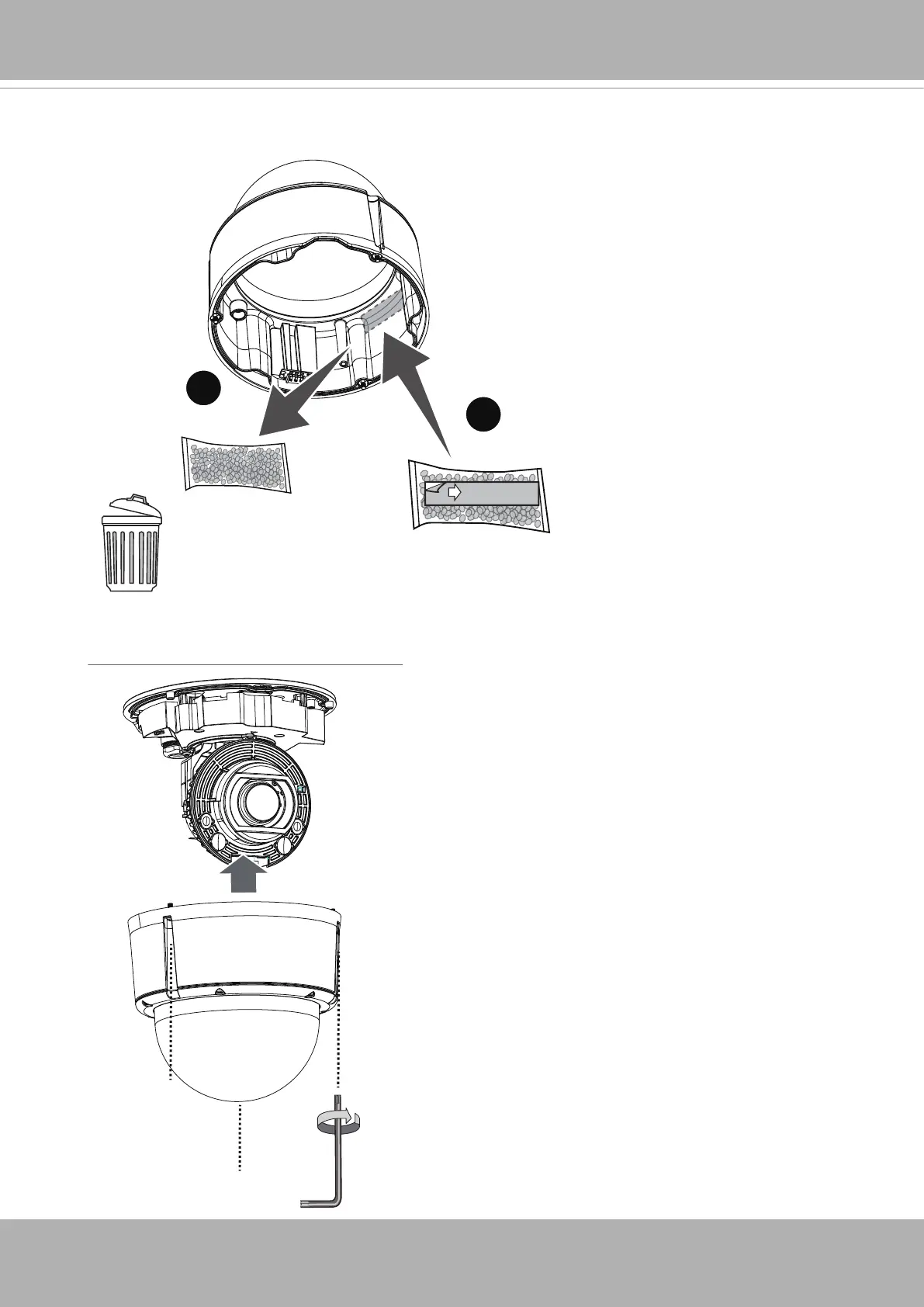 17. Replace the desiccant bag on the inside the camera dome cover.