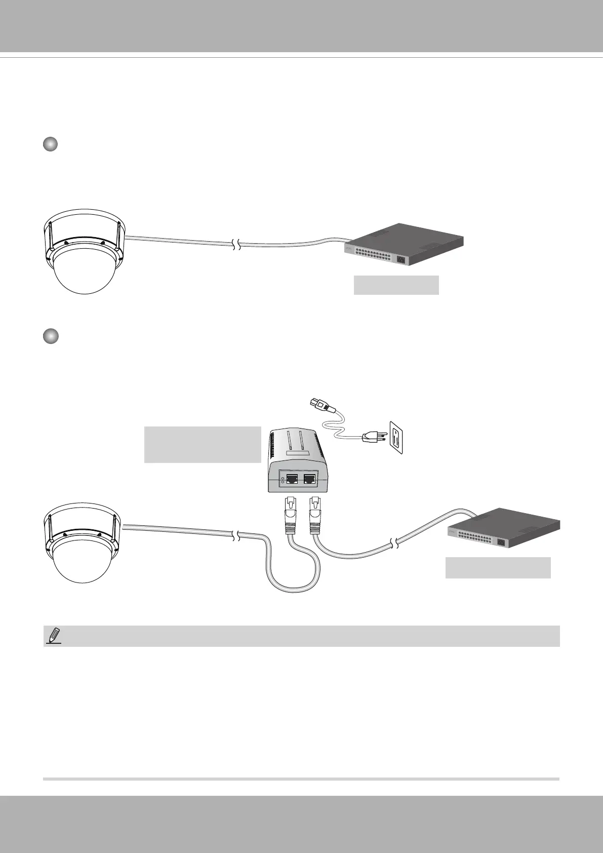 Use a PoE power injector (optional) to connect between the Network Camera and a non-