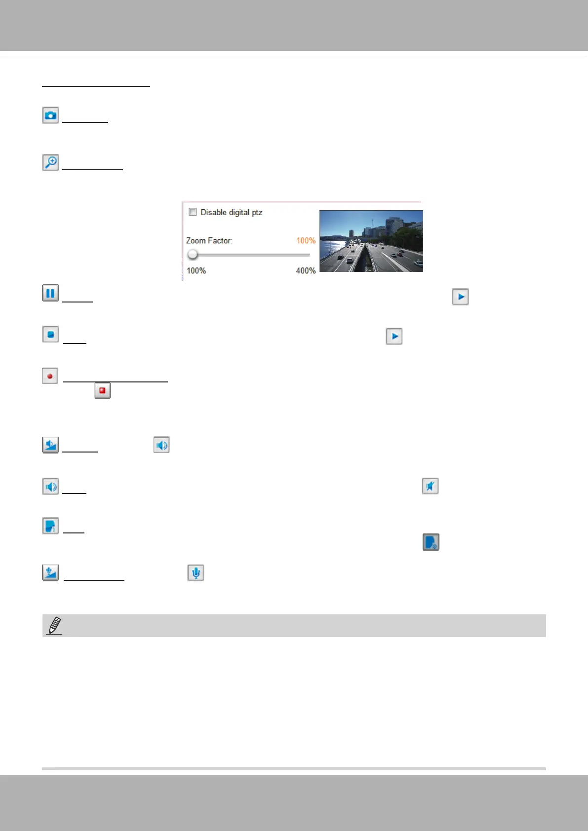 Video Control Buttons: Depending on the Network Camera model and Network Camera conguration,