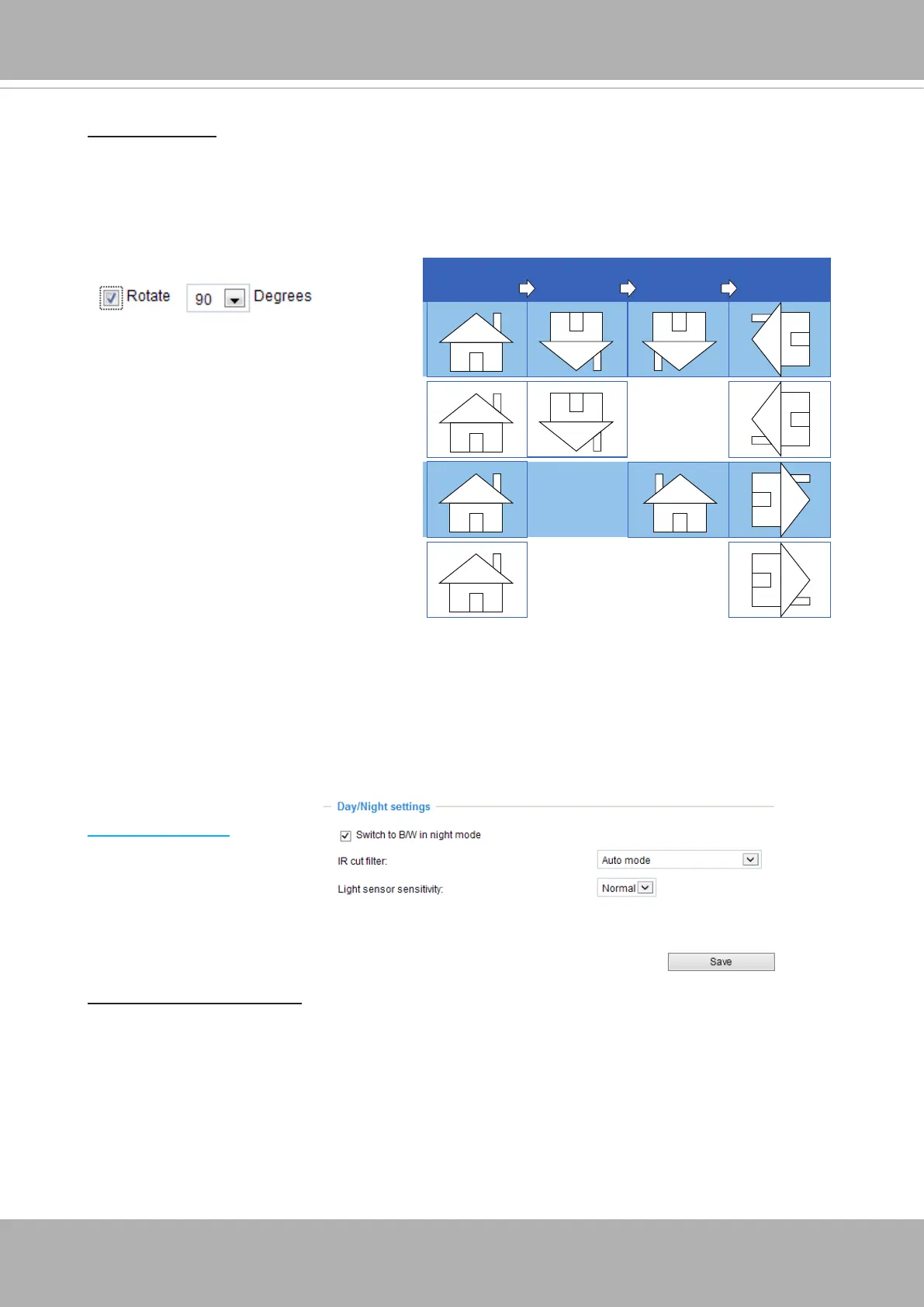 Video orientation: Flip - vertically reect the display of the live video; Mirror - horizontally reect the
