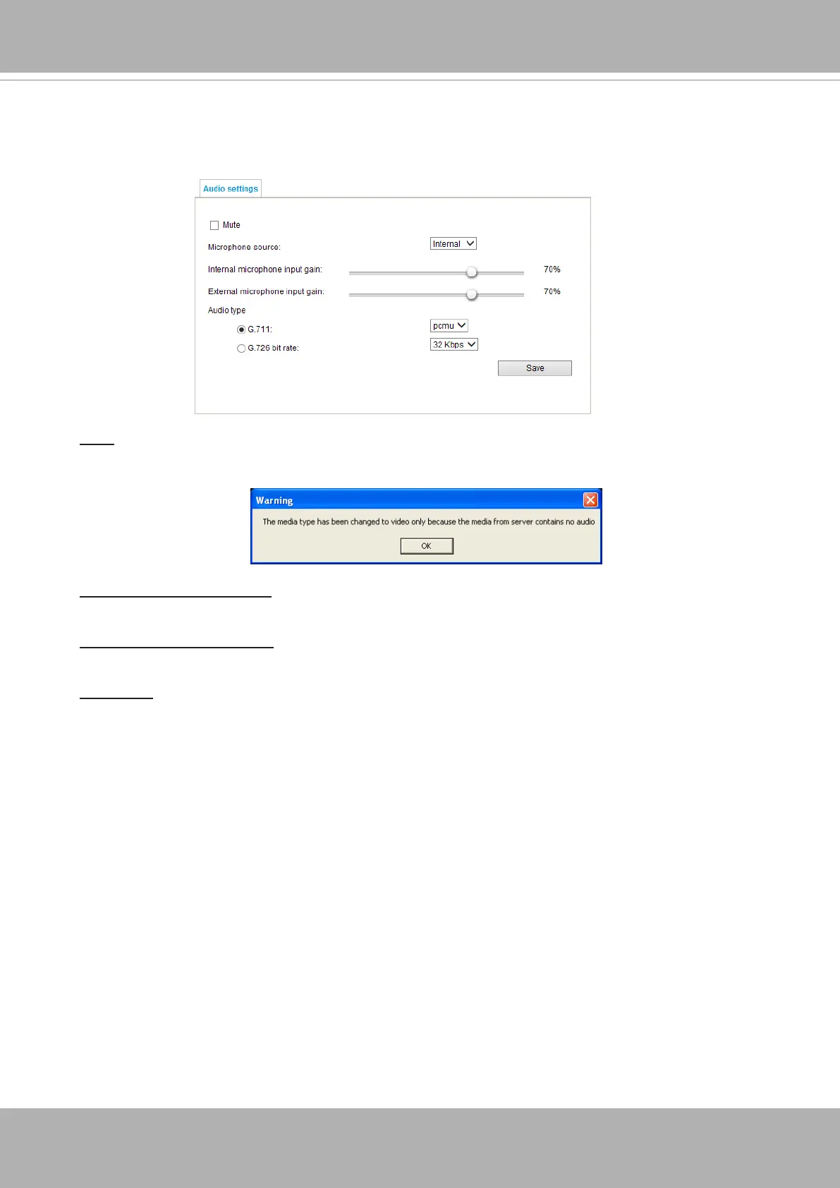 Mute: Select this option to disable audio transmission from the Network Camera to all clients. Note