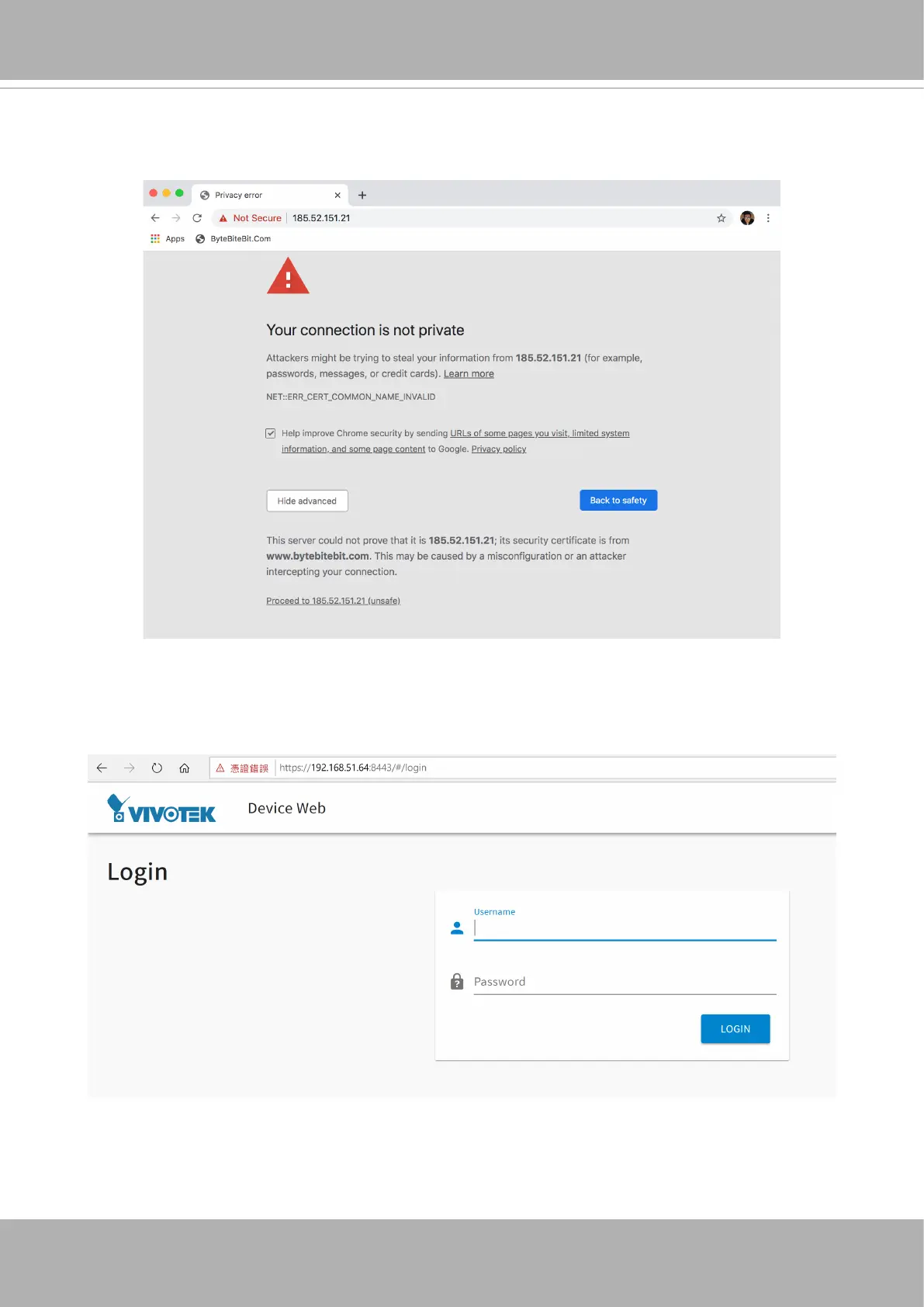 Click Proceed to xxx.xxx.xxx.xxx (Unsafe) to open the web console.