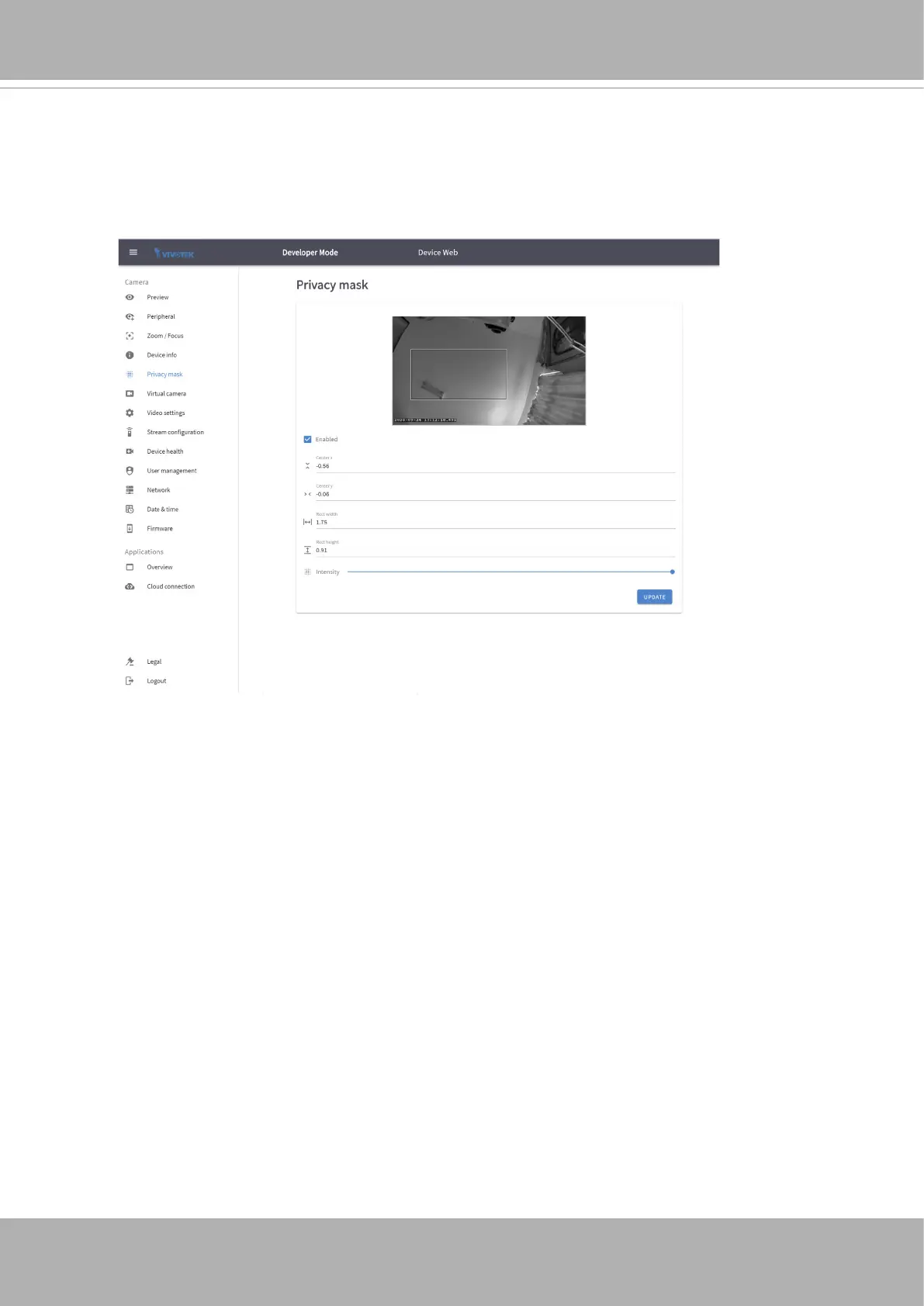image within the privacy mask is blurred. Currently 1 privacy mask is supported.