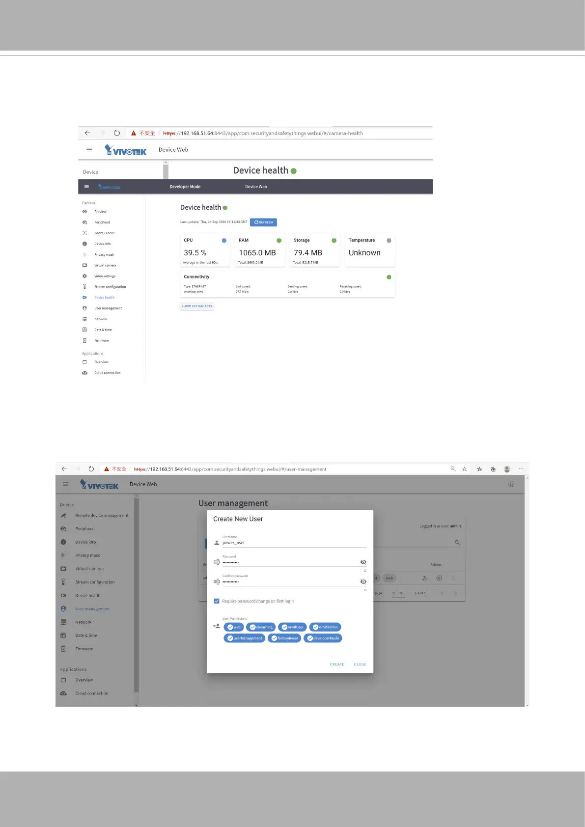 Vivotek FD9392-EHTV-O - Device Health; User Management