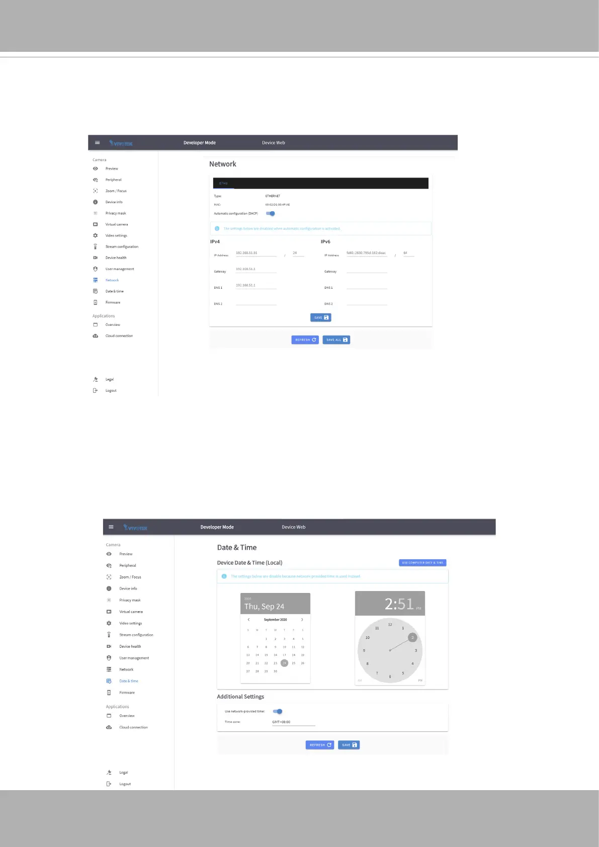 This page allows the user to congure the current date/time on the device, synchronize