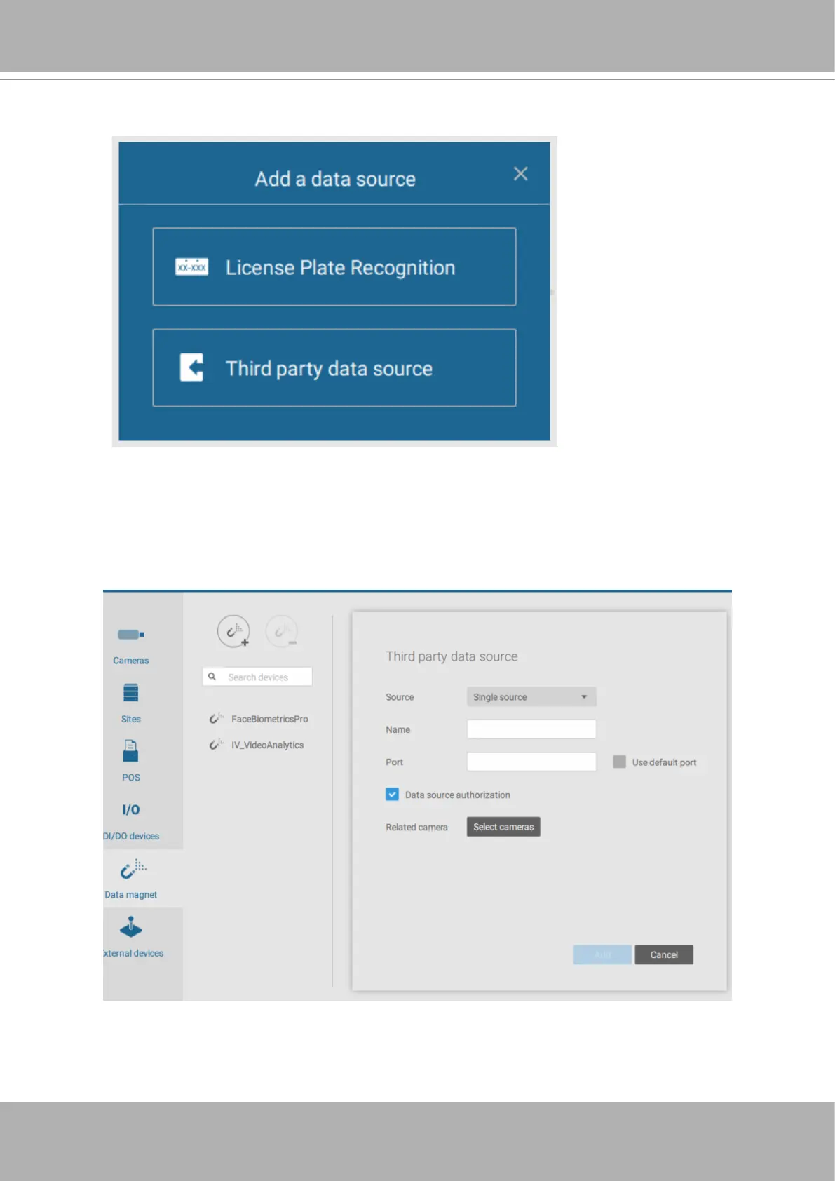 8. Enter the Data Source Name, port (usually 3443), select the associated camera, and