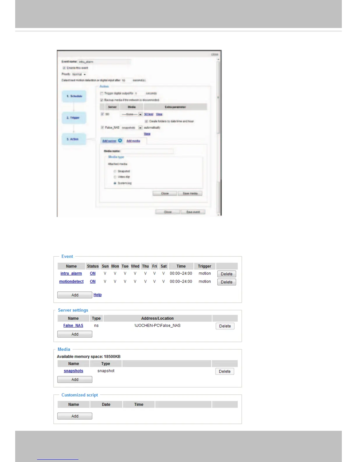 The following is an example of the Event setting page: