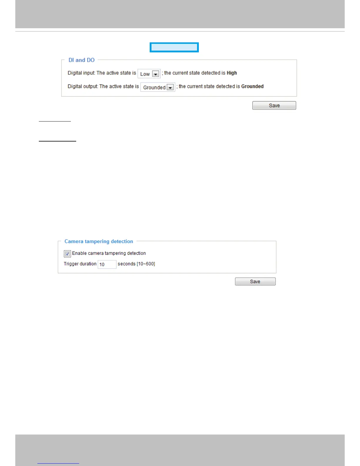 Digital input: Select High or Low to dene the activate status for the digital input. The Network Camera's
