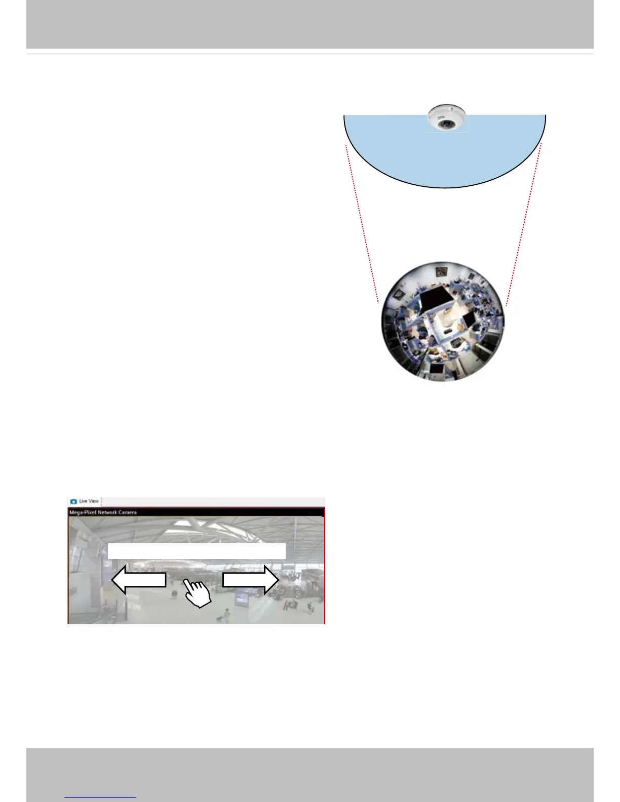 When mounted on a ceiling, the sheye camera can