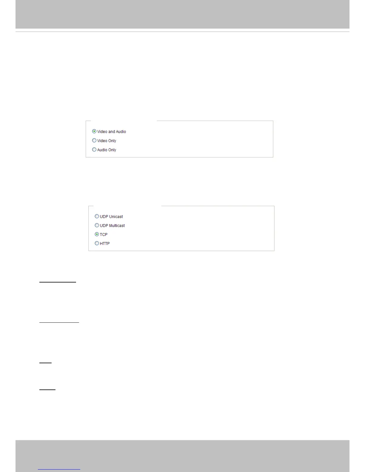 Select to stream video or audio data or both. This is enabled only when the video mode is set to H.264 or