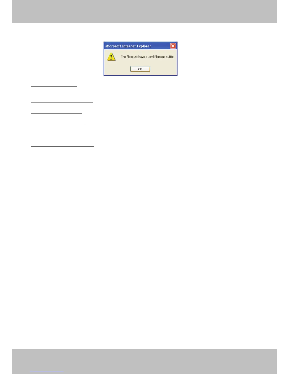 The following message is displayed when attempting to upload an incorrect le format.