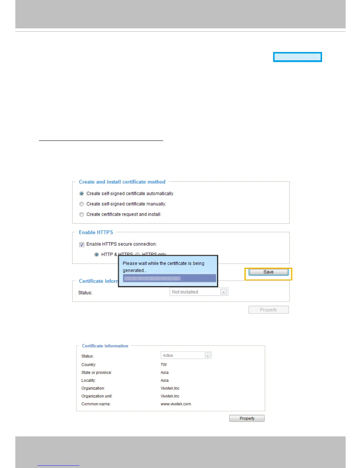 Before using HTTPS for communication with the Network Camera, a Certicate must be created rst.