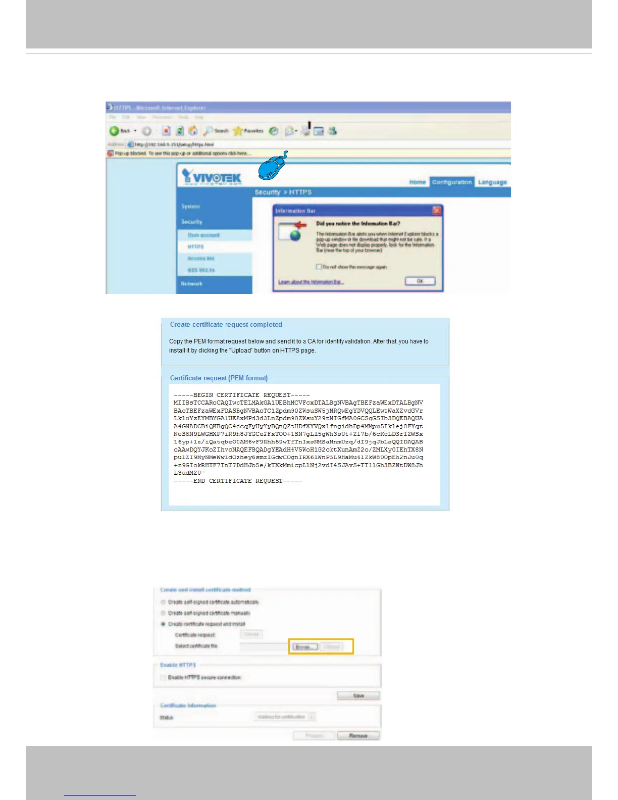 4. The pop-up window shows an example of a certicate request.
