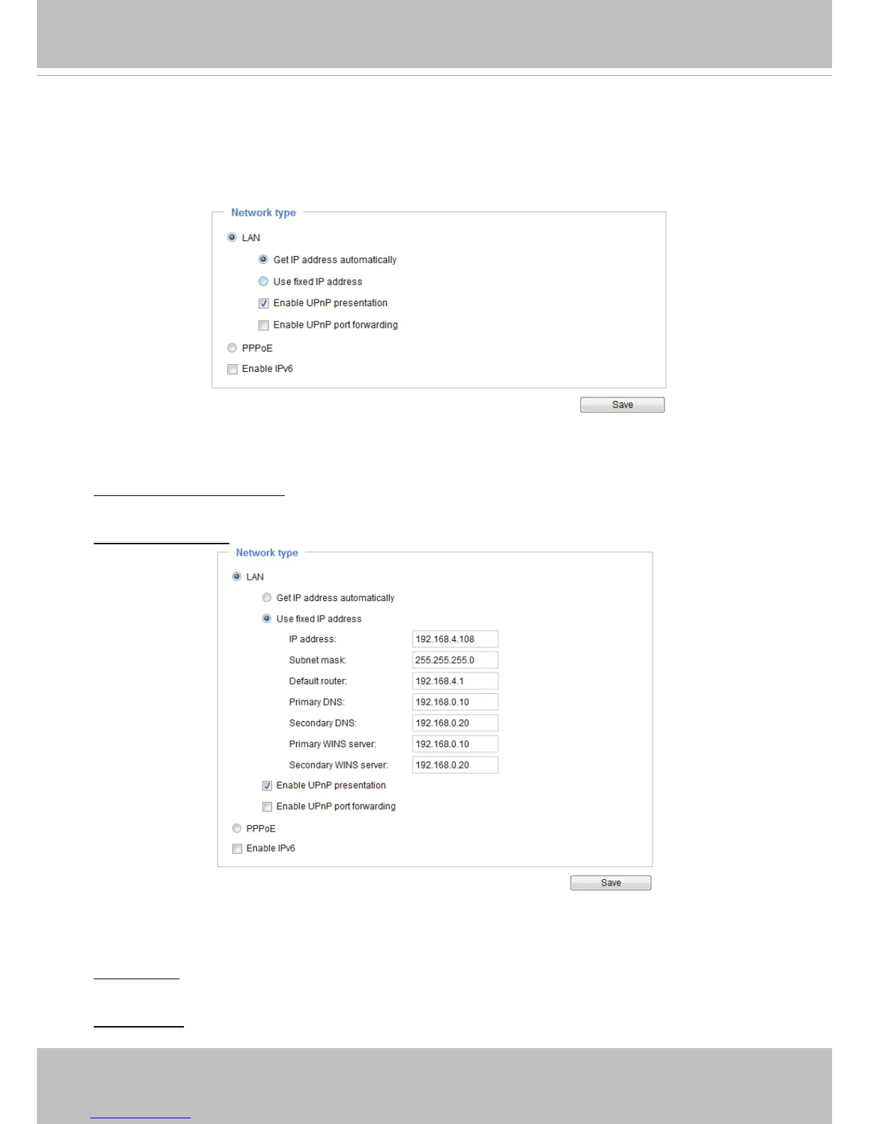 Use xed IP address: Select this option to manually assign a static IP address to the Network Camera.