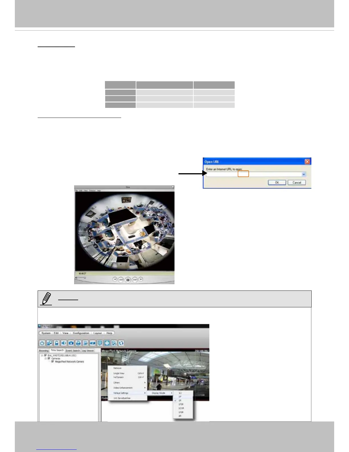 An original, oval view will be displayed using all RTSP players. For access to the Regional