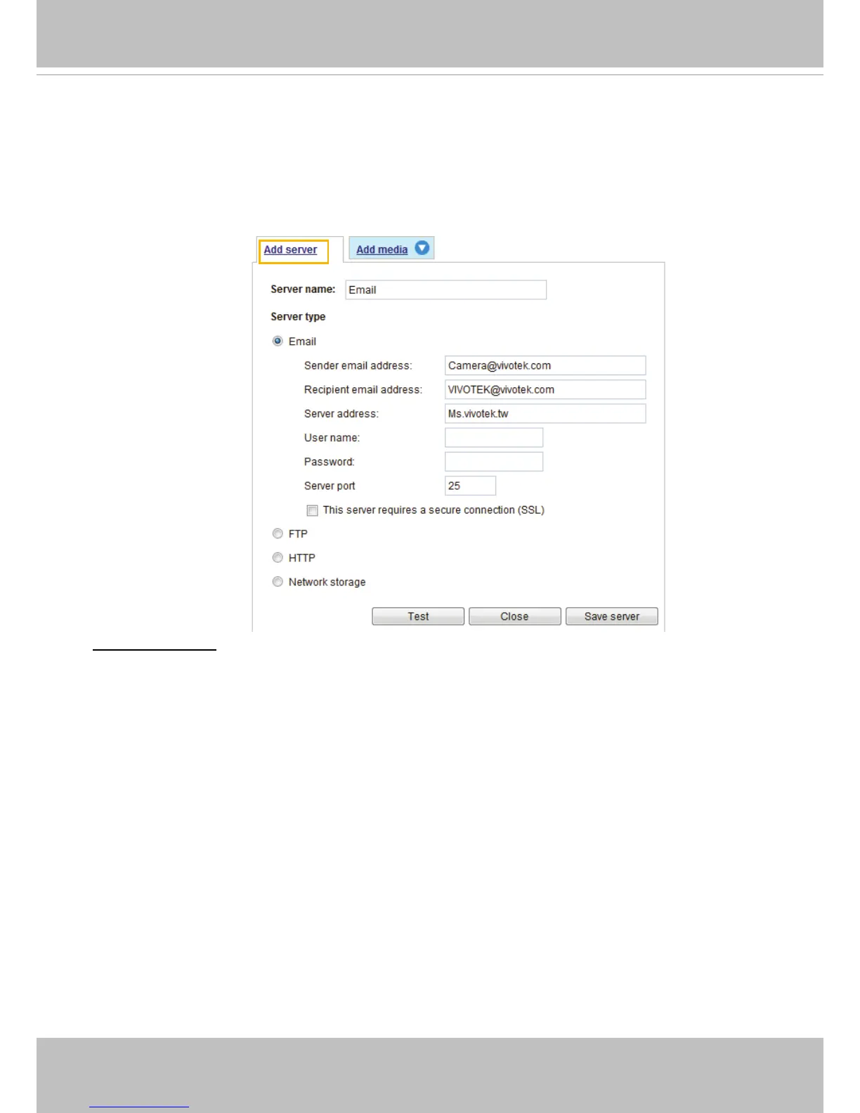 are sent when a trigger is activated. A total of 5 server settings can be congured.