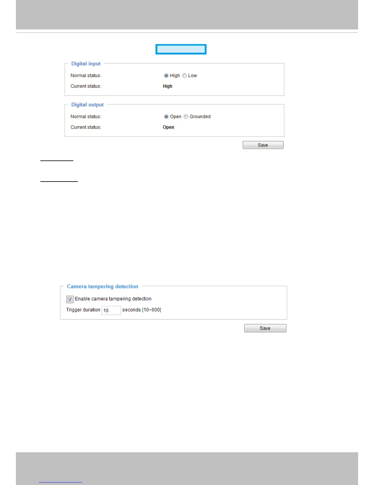 Digital output: Select Grounded or Open to dene the normal status for the digital output. Connect the