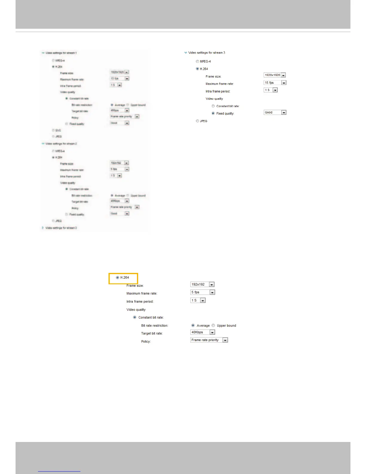bit rate for live viewing on web browsers. Note that a larger frame size takes up more bandwidth.