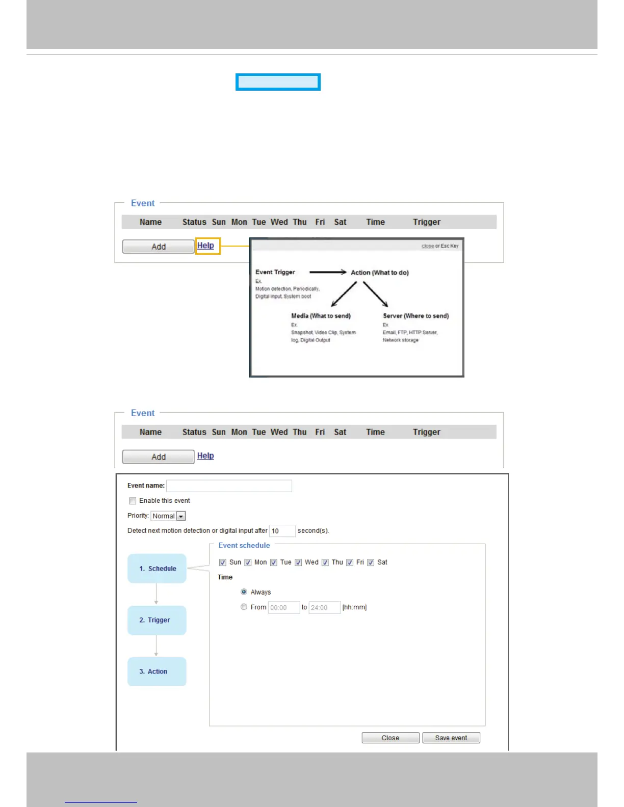 sources, such as motion detection or external digital input devices. When an event is triggered,