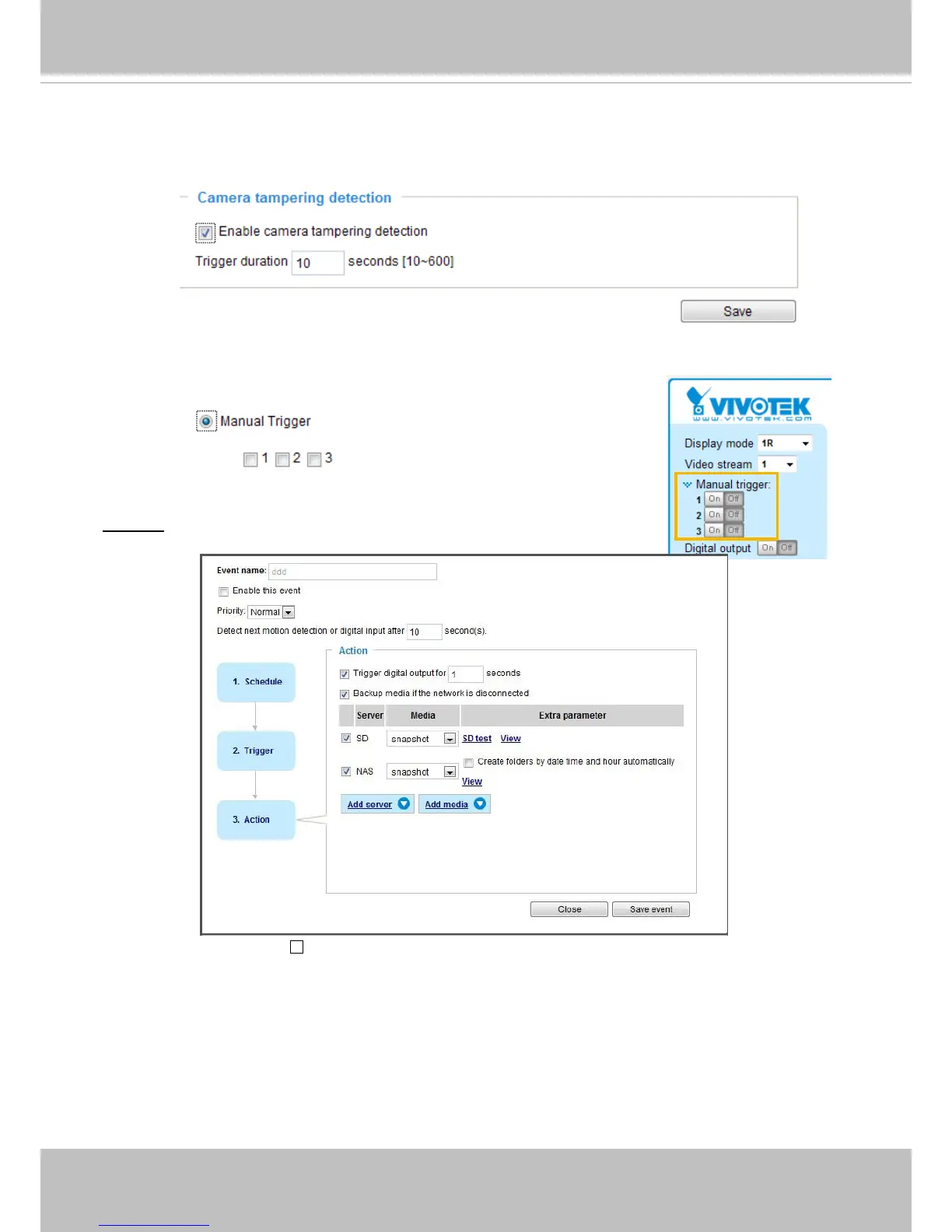 This option allows the Network Camera to trigger when the camera detects that is is being tampered