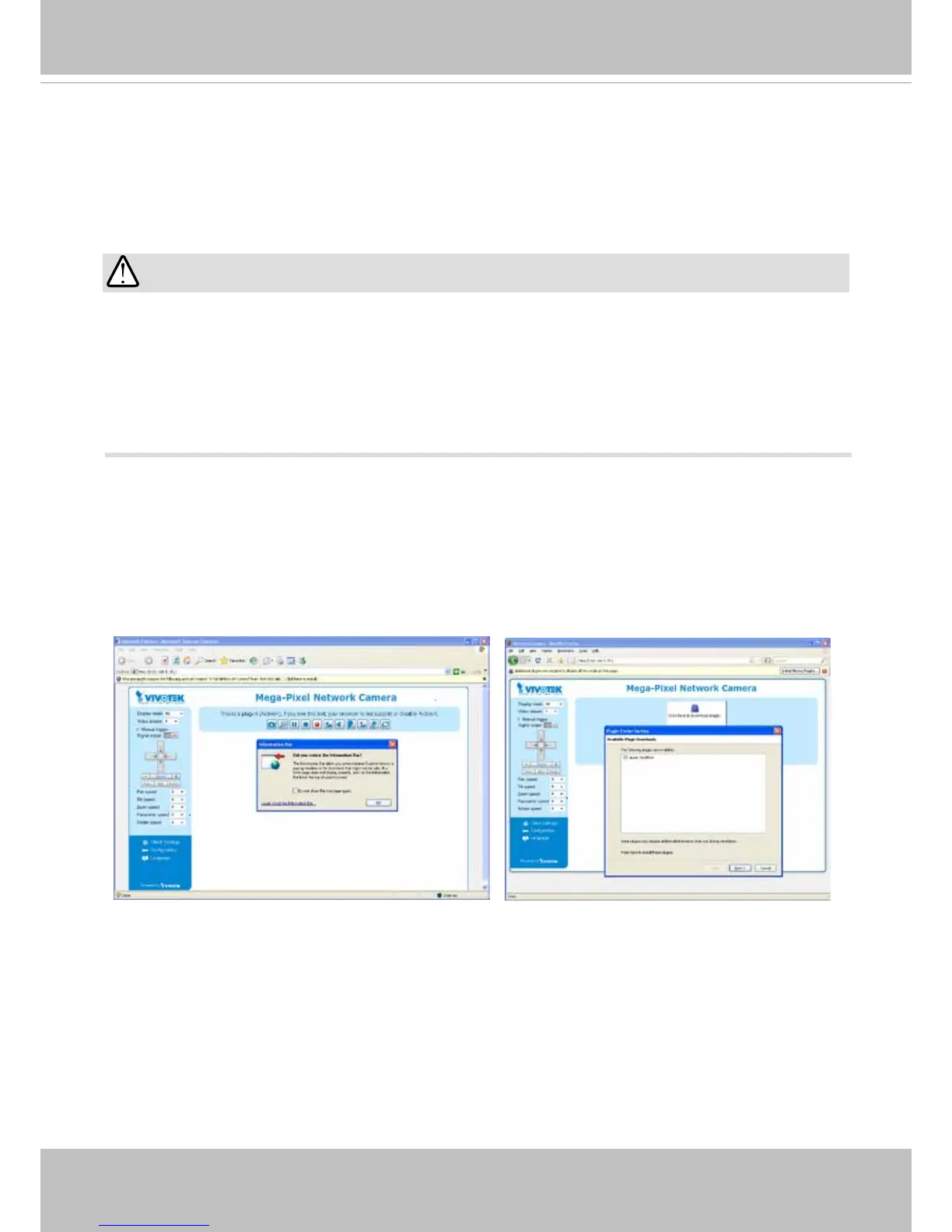 4. If it is the rst time installing the VIVOTEK network camera, an information bar will prompt as