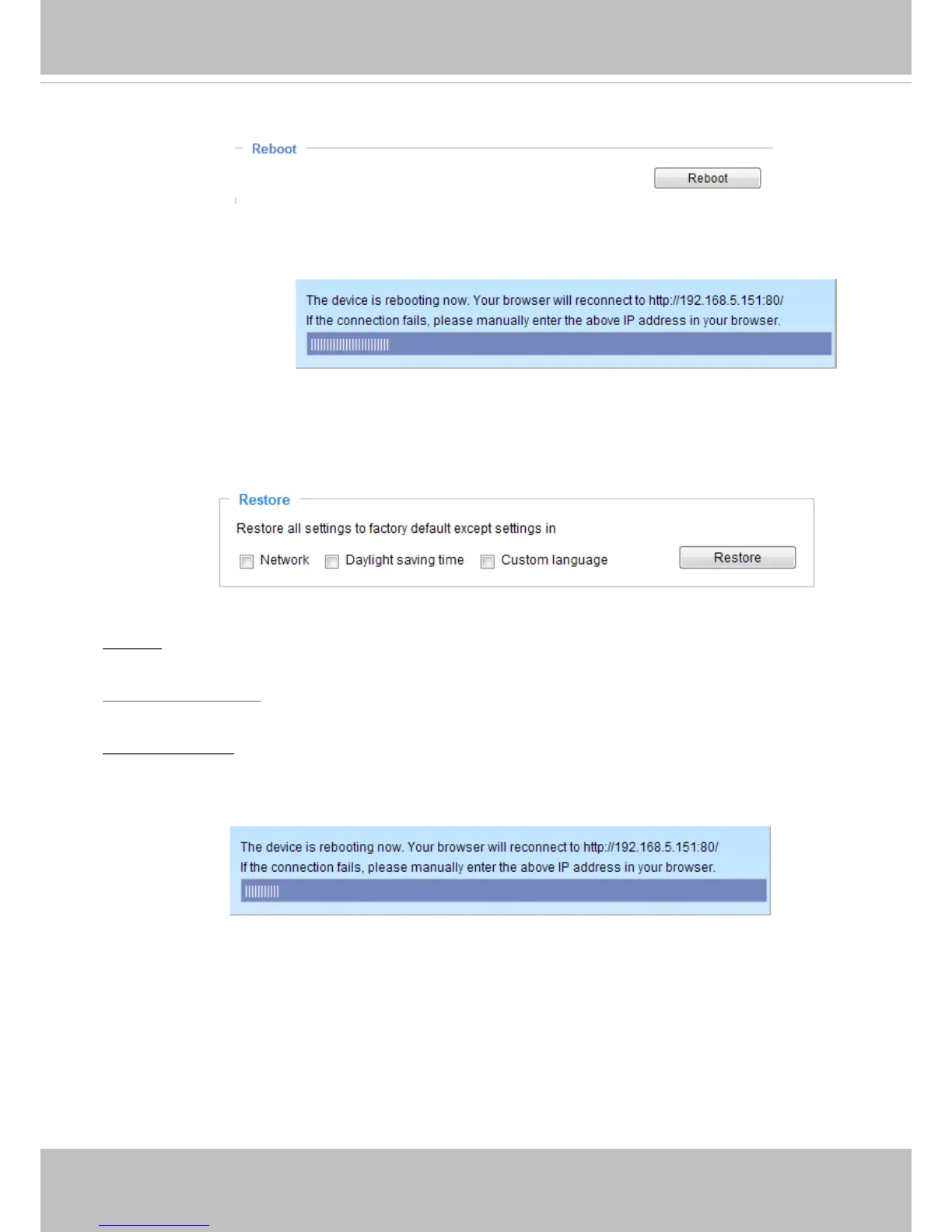 This feature allows you to reboot the Network Camera, which takes about one minute to complete. When