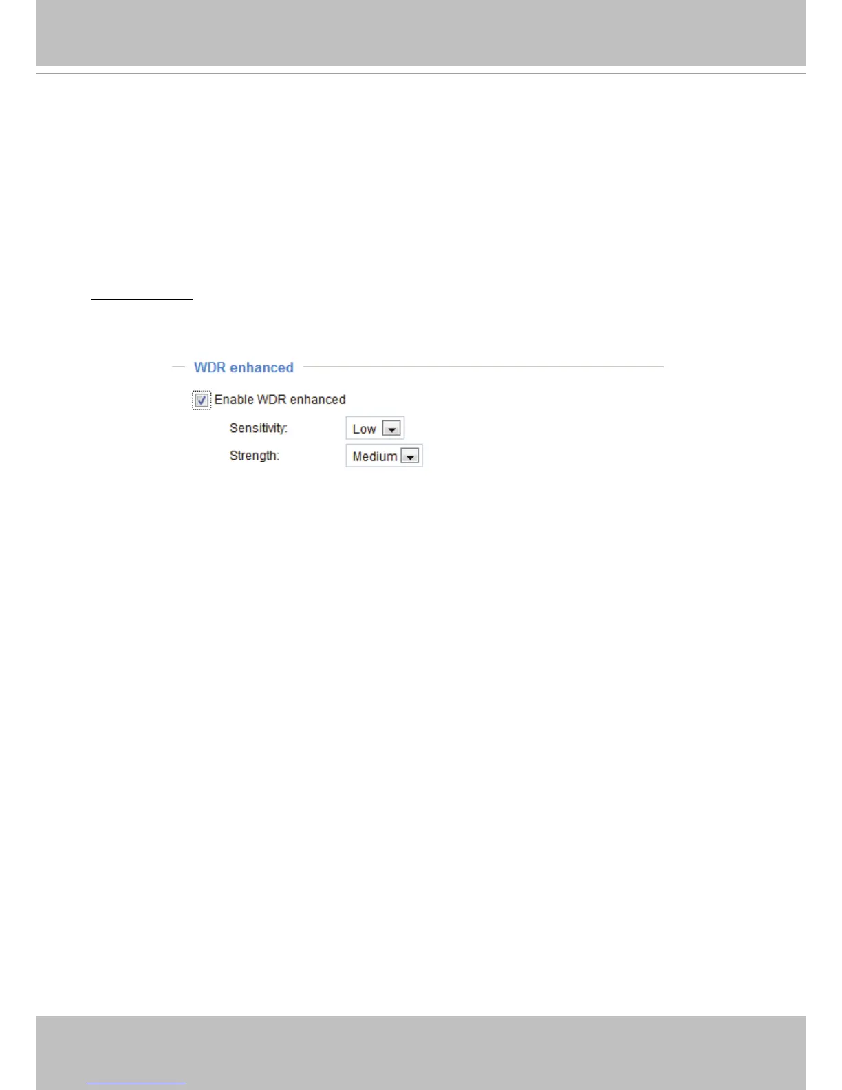 select the Enable WDR enhanced checkbox, and then adjust the sensitivity (low, high) and the strength