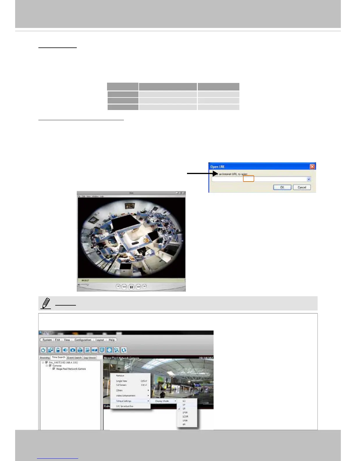An original, oval view will be displayed using all RTSP players. For access to the Regional