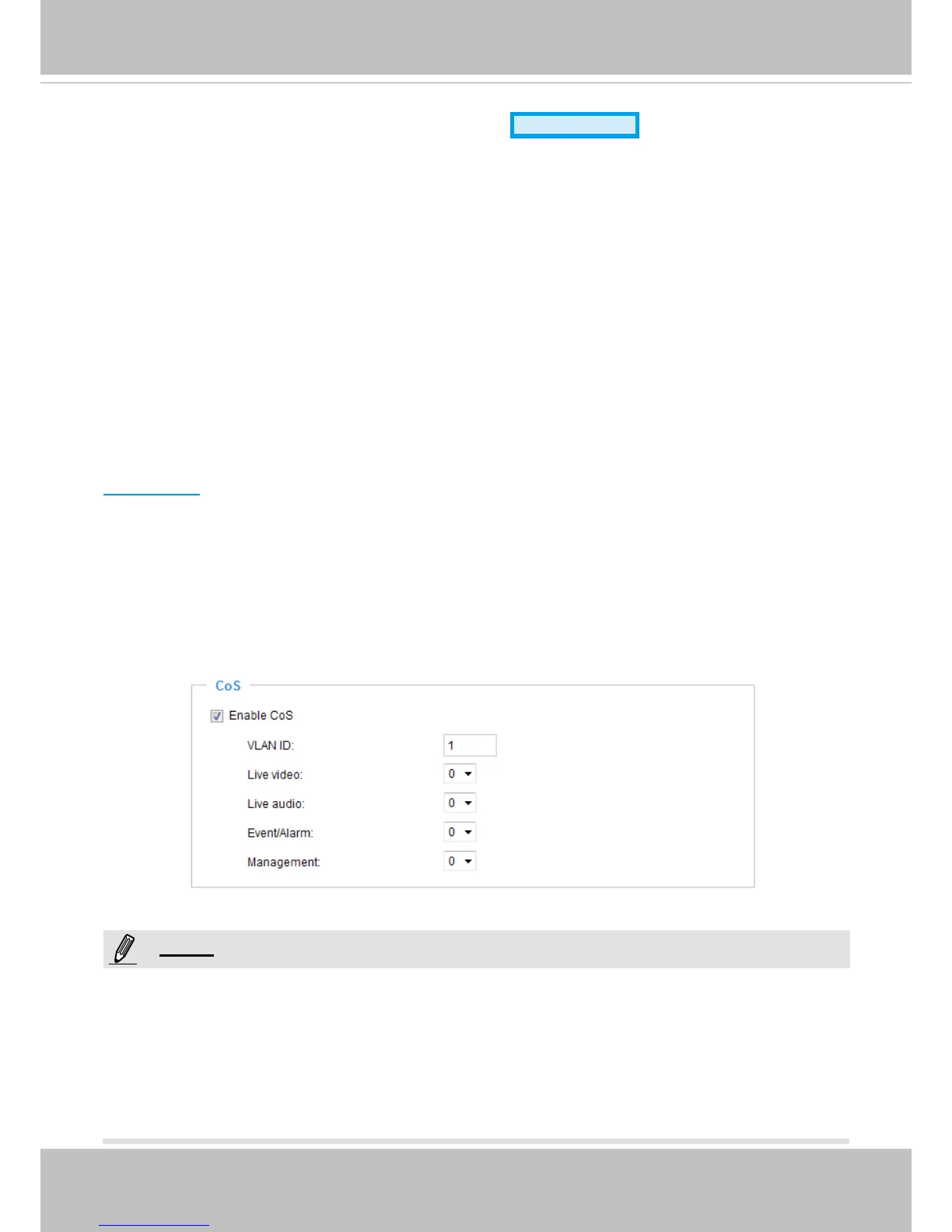 Below is the setting column for CoS. Enter the VLAN ID of your switch (0~4095) and choose the priority