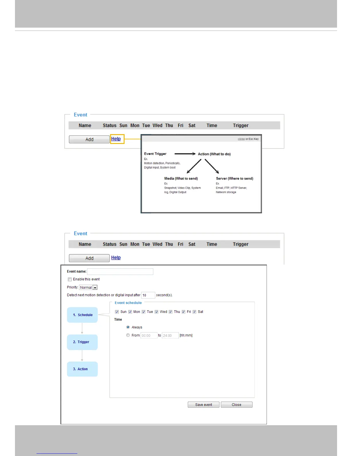 sources, such as motion detection or external digital input devices. When an event is triggered,
