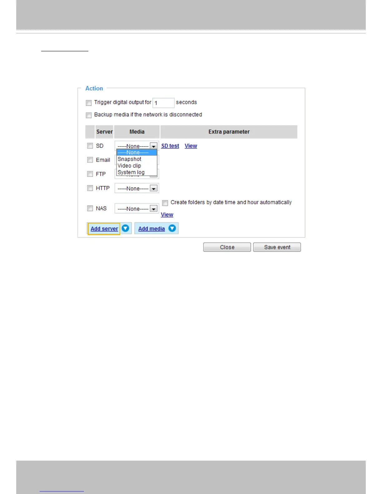 Select to send the media les to a network storage location when a trigger is activated. Please refer to