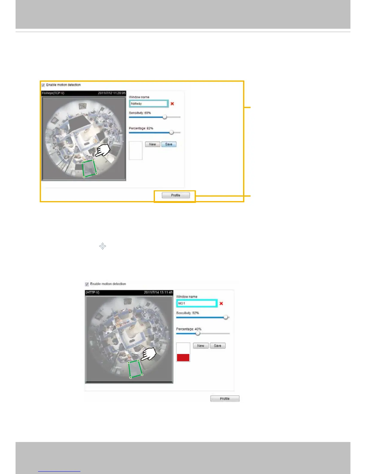 threshold, the red bar rises. Meanwhile, the motion detection window will be outlined in red. Photos or