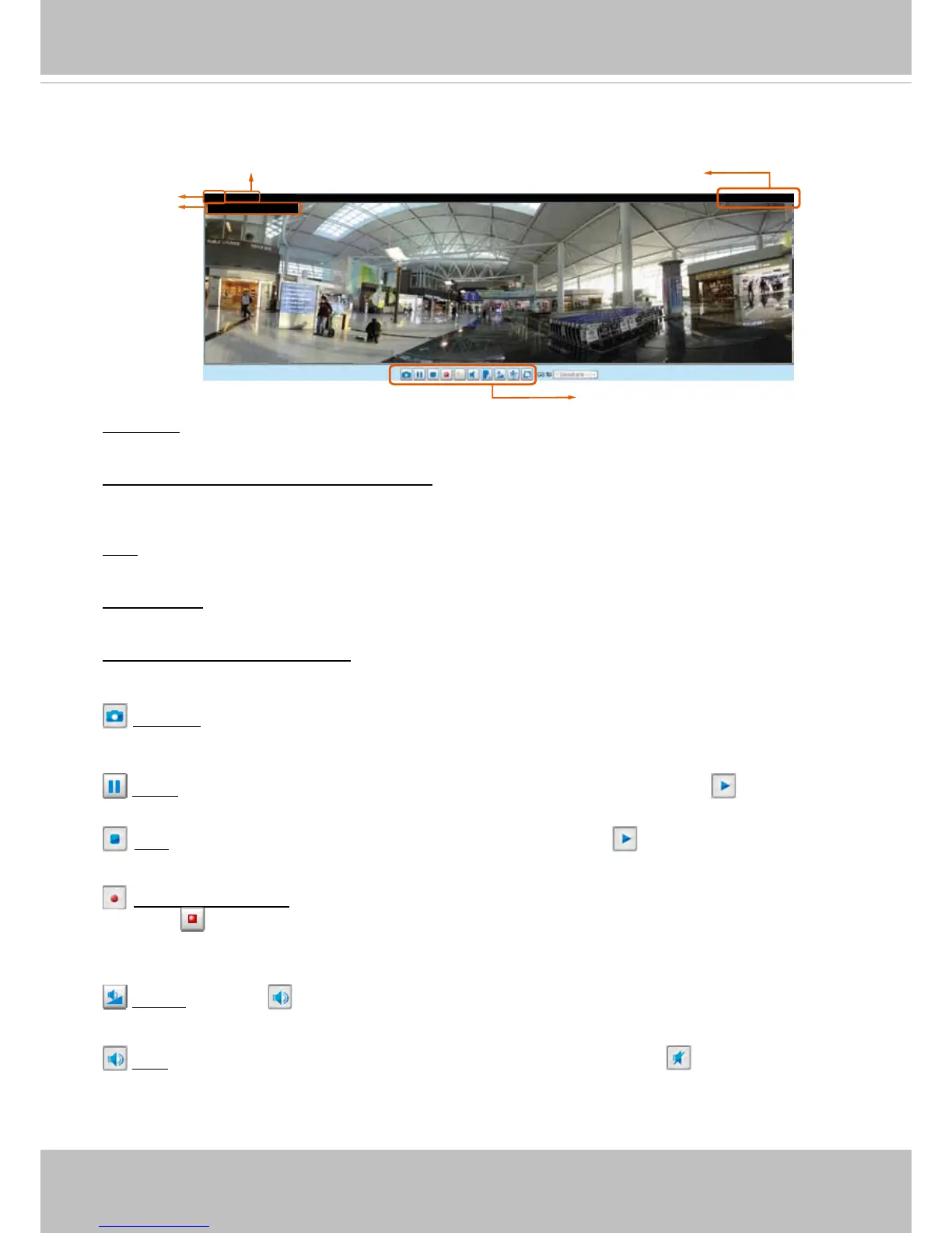 Stop: Stop the transmission of the streaming media. Click the Resume button to continue