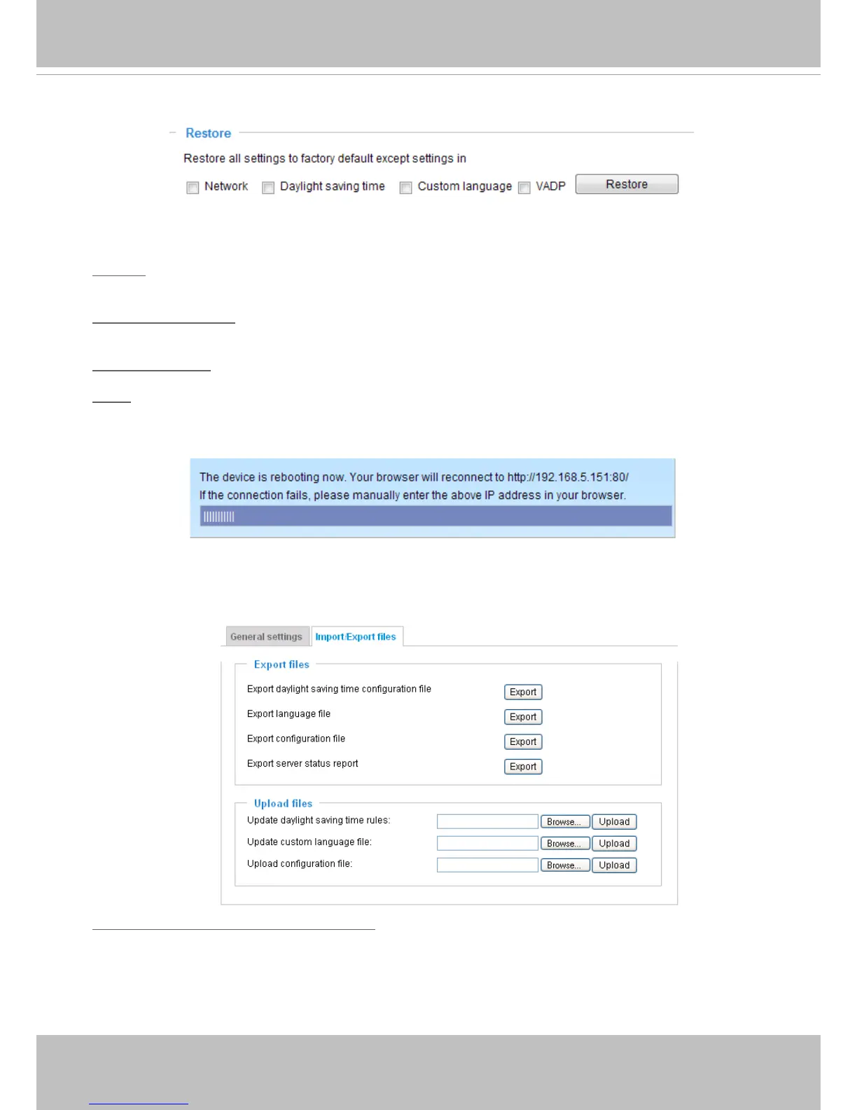 1. In the Export les column, click Export to export the daylight saving time conguration le from the