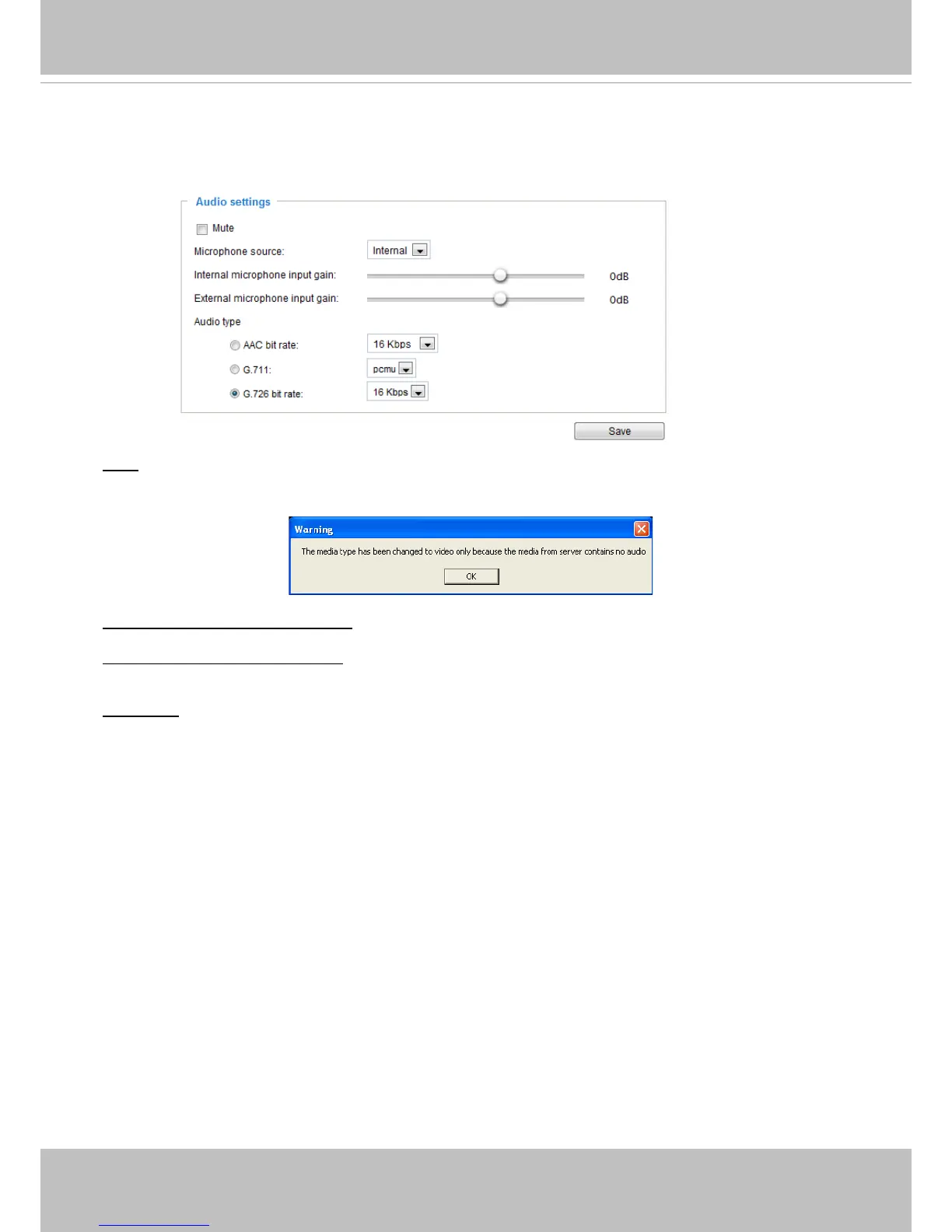 Mute: Select this option to disable audio transmission from the Network Camera to all clients. Note that