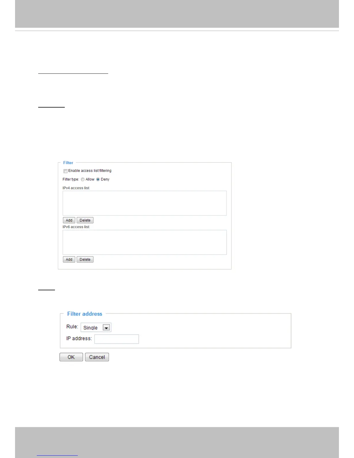 Enable access list ltering: Check this item and click Save if you want to enable the access list ltering