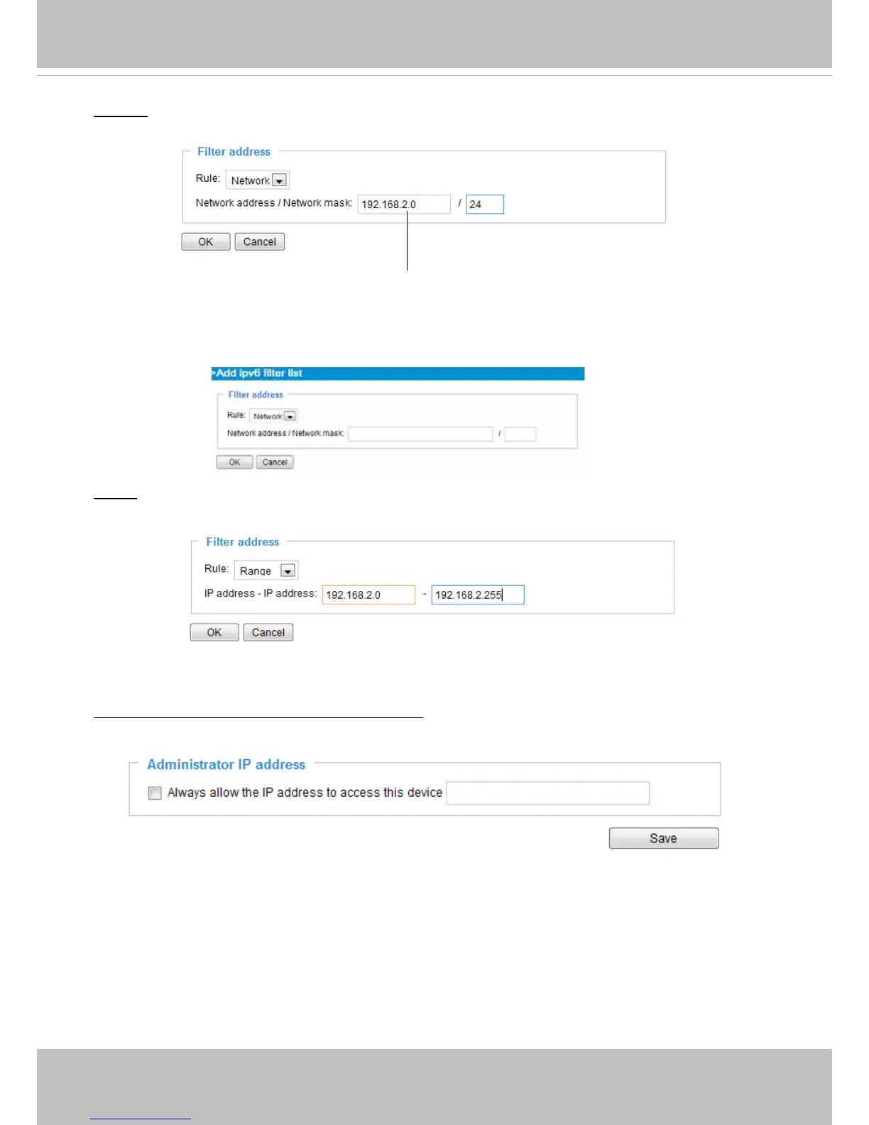 IP address in this eld to make sure the Administrator can always connect to the device.